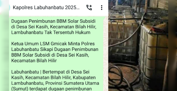 Ketua Umum LSM Gmicak Minta Polres Labuhanbatu Sikapi Dugaan Penimbunan BBM Solar Subsidi di Sei Kasih, Kecamatan Bilah Hilir